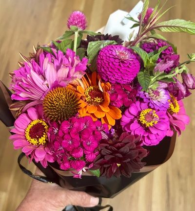 Each bouquet features a seasonal mix of focal flowers, fillers, and fresh foliage — harvested at peak freshness and thoughtfully arranged in our signature garden-inspired style.